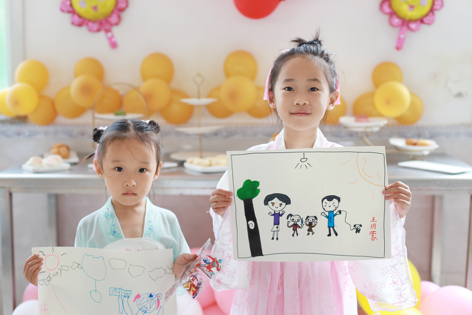 孩子们拿起画笔画画我心中的三金,我心中的家